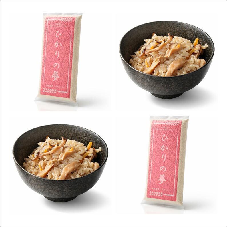 【ひかりの夢】【どこでも炊き込みご飯セット】北海道産ゆめぴりか 2合(300g) ×2個+北海道産きのこの炊き込みご飯の素×2袋